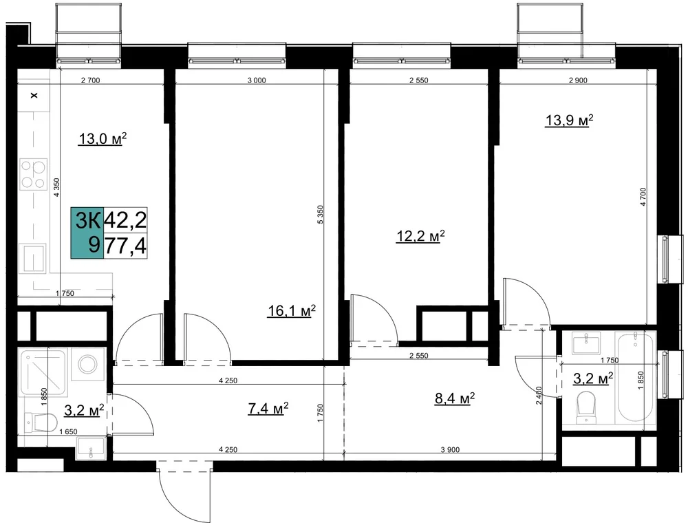 3-комнатная  81.2 м2