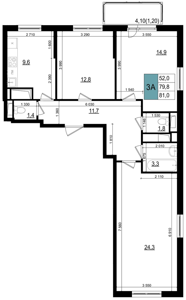 3-комнатная